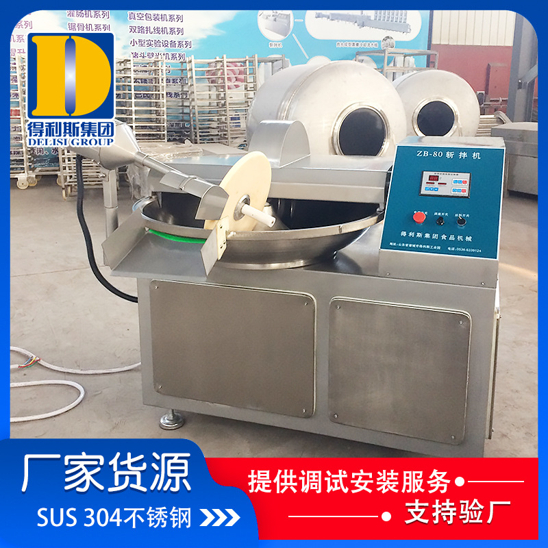 6、配有出料器,出料方便、干凈。 斬拌機可對肉類,水果蔬菜,海產品及調味品,進行深加工。刀高速旋轉,可以縮短運行時間,減少物料發熱量,保持餡料的色澤。