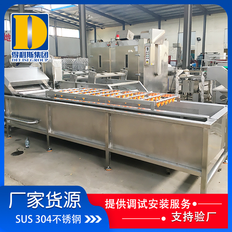 以高壓風機風力或水泵的壓力使水產生強烈攪拌運動,使物料在水中翻滾,從而達到清洗效果,節水效果好。采用氣泡翻滾、刷洗、噴淋技術,對物料進行清洗,流水線中各單機可根據用戶各自不同的加工特點量身定制,滿足工藝要求,清洗運行速度無ji可調,用戶可根據不同的清洗內容任意設定,該機結構緊湊,自動化程度高。