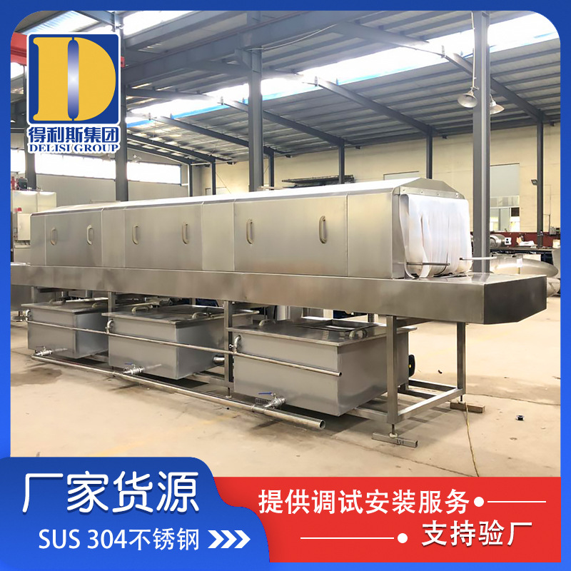 2. 設備有熱堿水噴淋段、熱水噴淋段、清水噴淋段、消毒水噴淋段、烘干段等幾部分組成,其中消毒水噴淋段及烘干段可根據客戶要求定配。